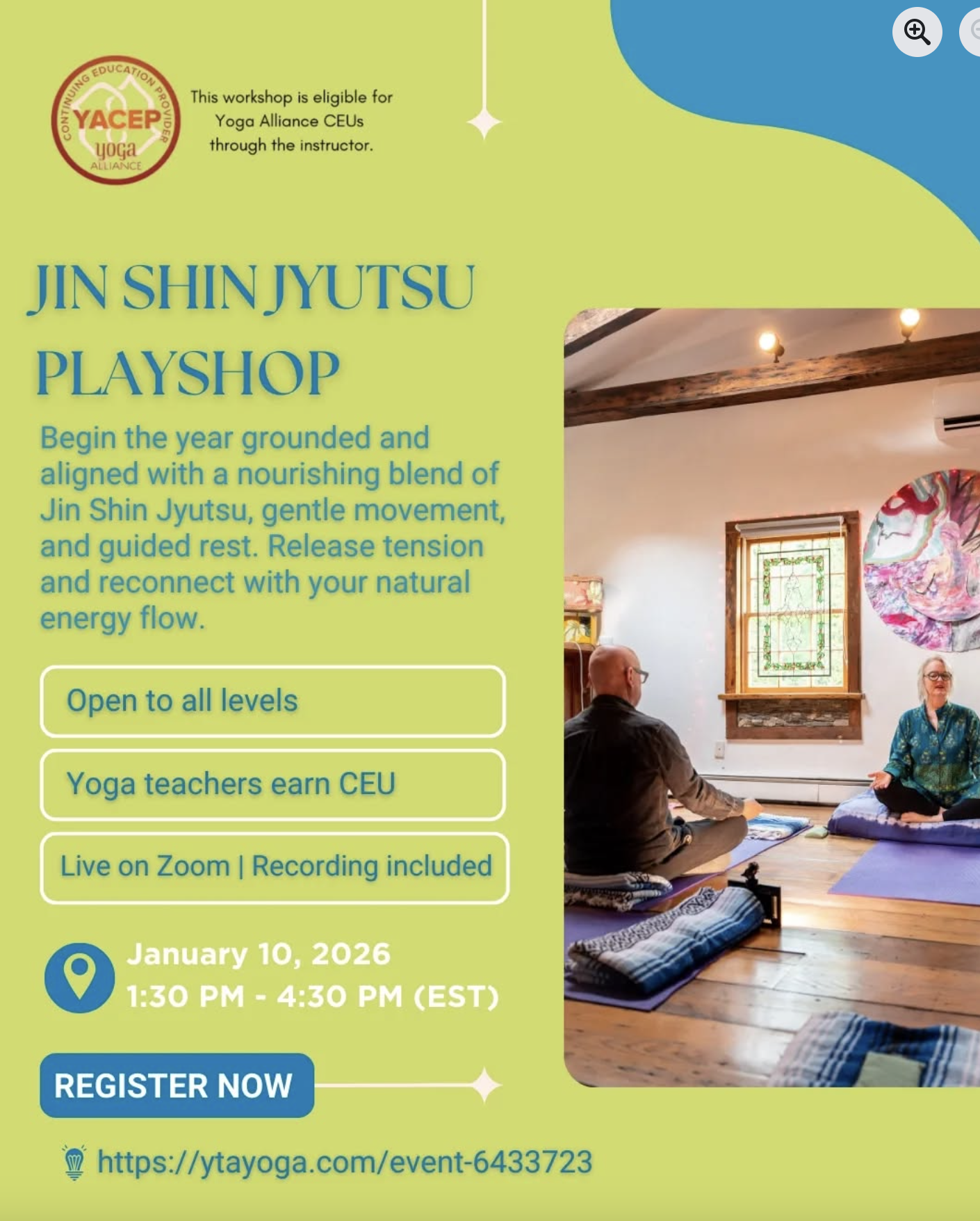 The second half of class offers an integrative practice blending Jin Shin Jyutsu with Meditation-in-Motion, gentle Kriya Starters, and a deeply restorative Yoga Nidra for healing. Together, we’ll cultivate harmony in body, mind, and spirit while deepening our connection with Source.